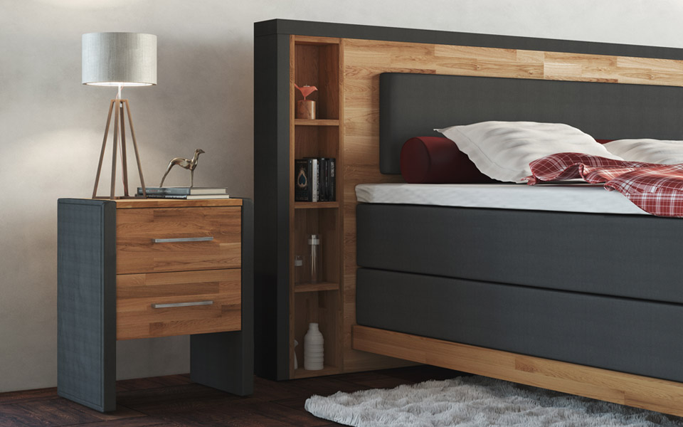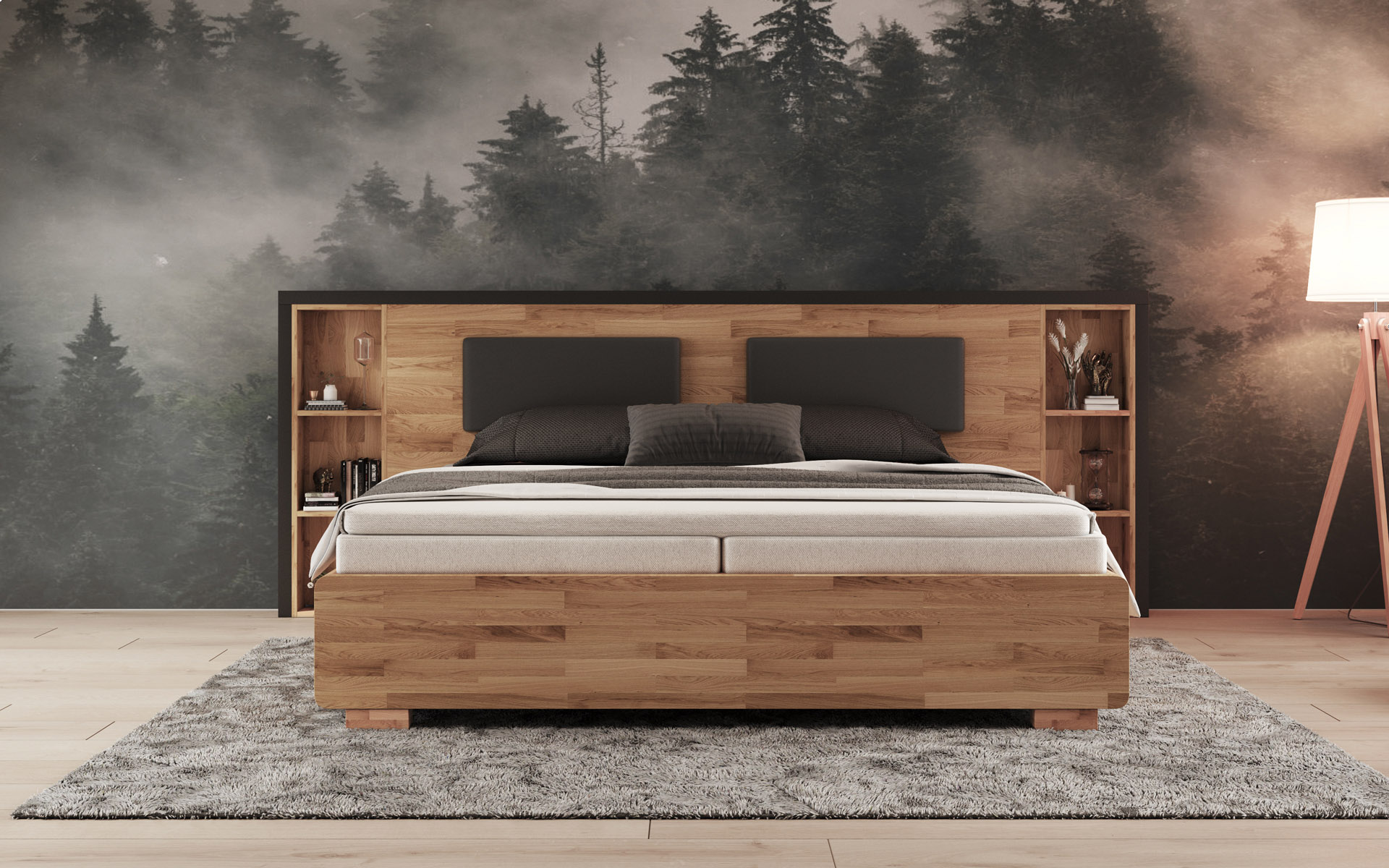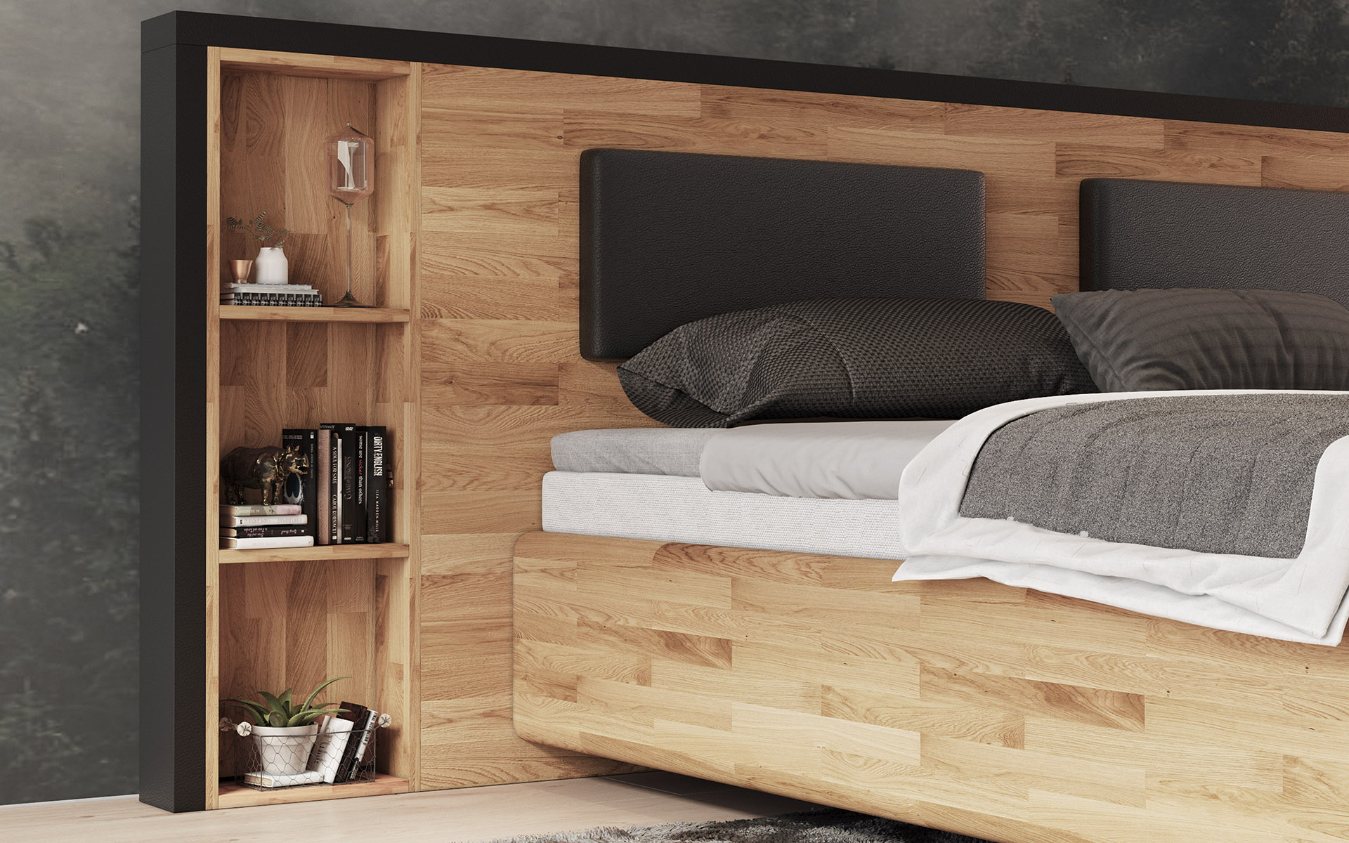 Alle Boxspringbetten aus Massivholz werden individuell nach Ihren Wünschen und Vorstellungen gefertigt. Neben der Bettgröße und dem Design, sind auch Betthöhe, Kopfteilbreite & Höhe wählbar.